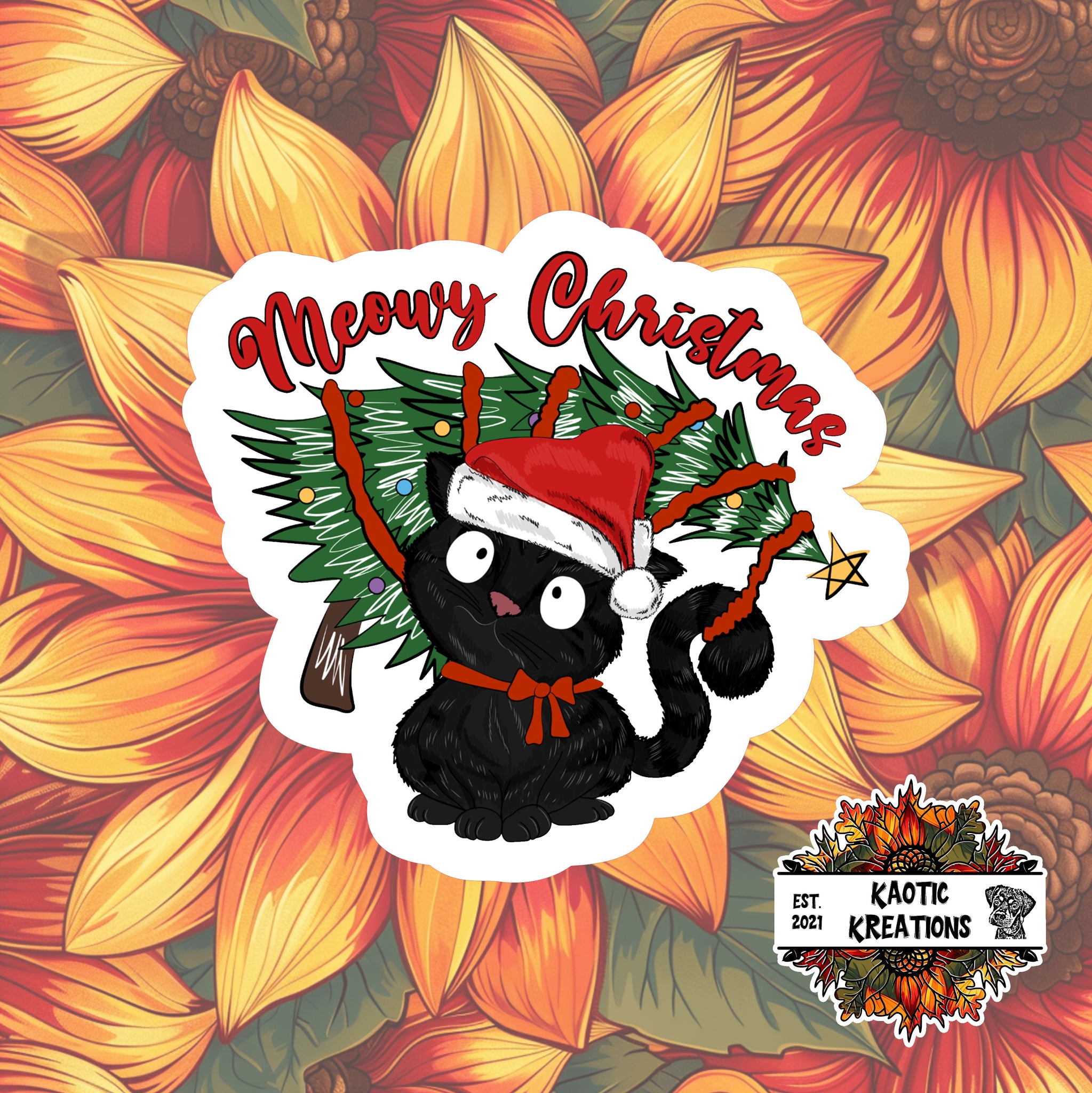 Meowy Christmas Black Cat Christmas Sticker