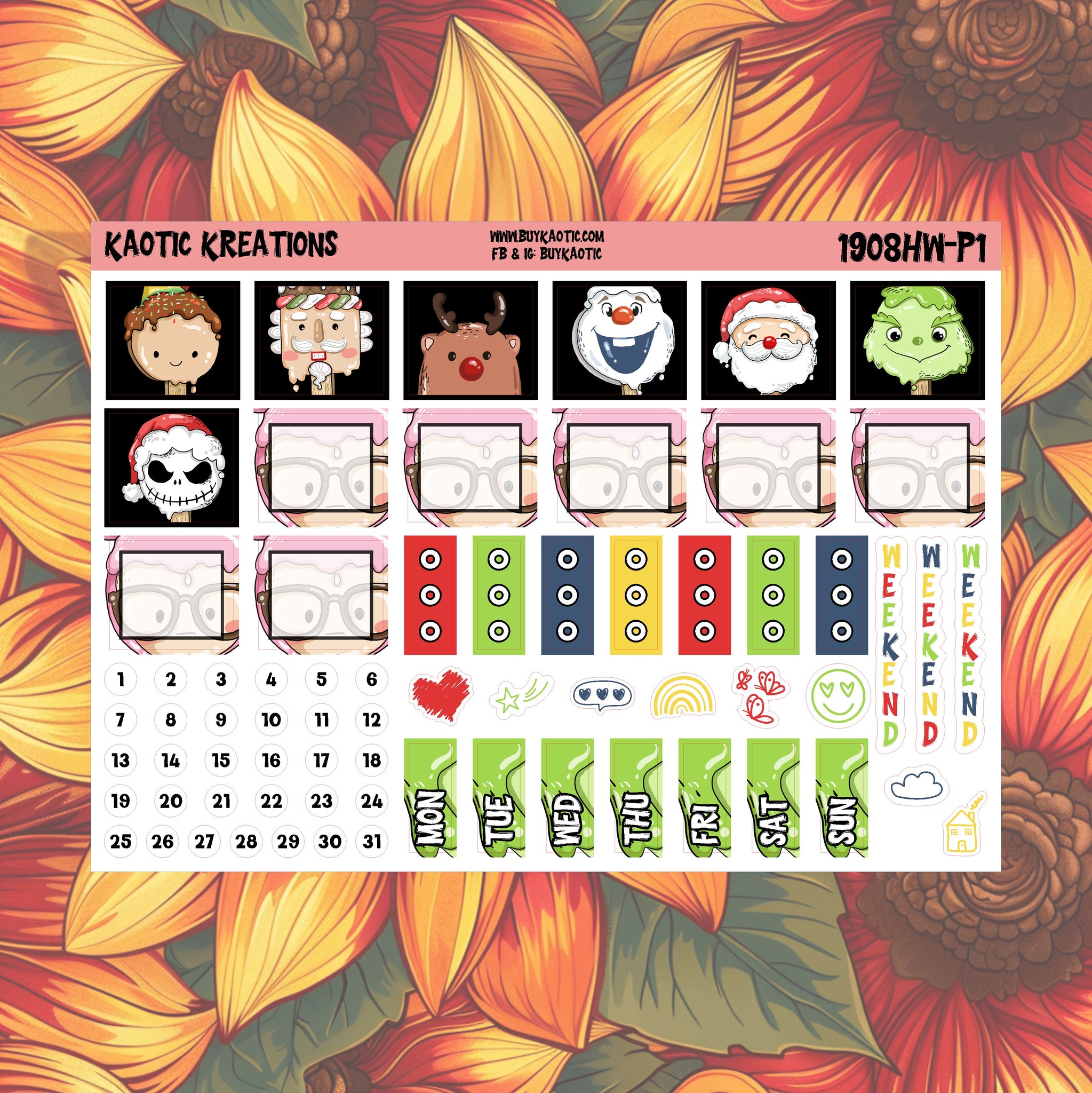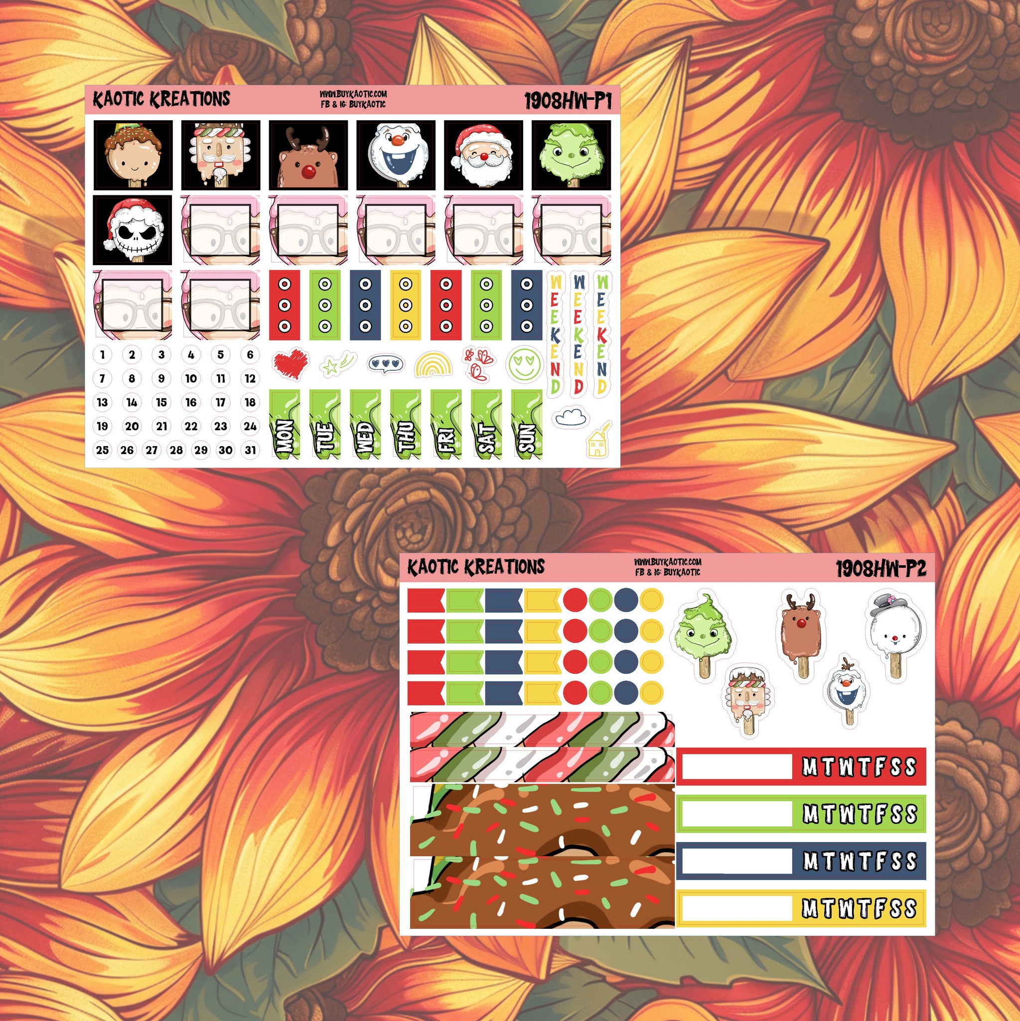 -One weekly sticker kit, consists of two pages.