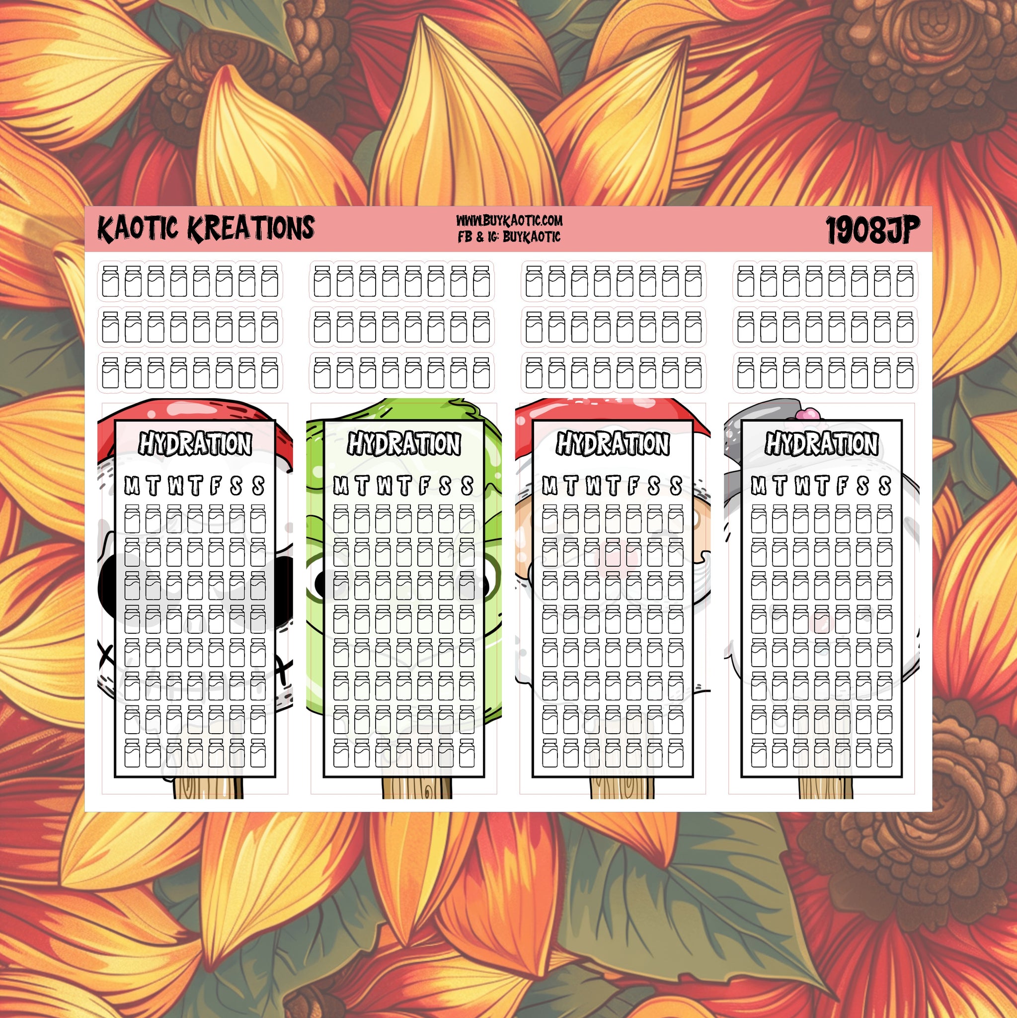 -One sheet of hydration stickers or can get both styles.