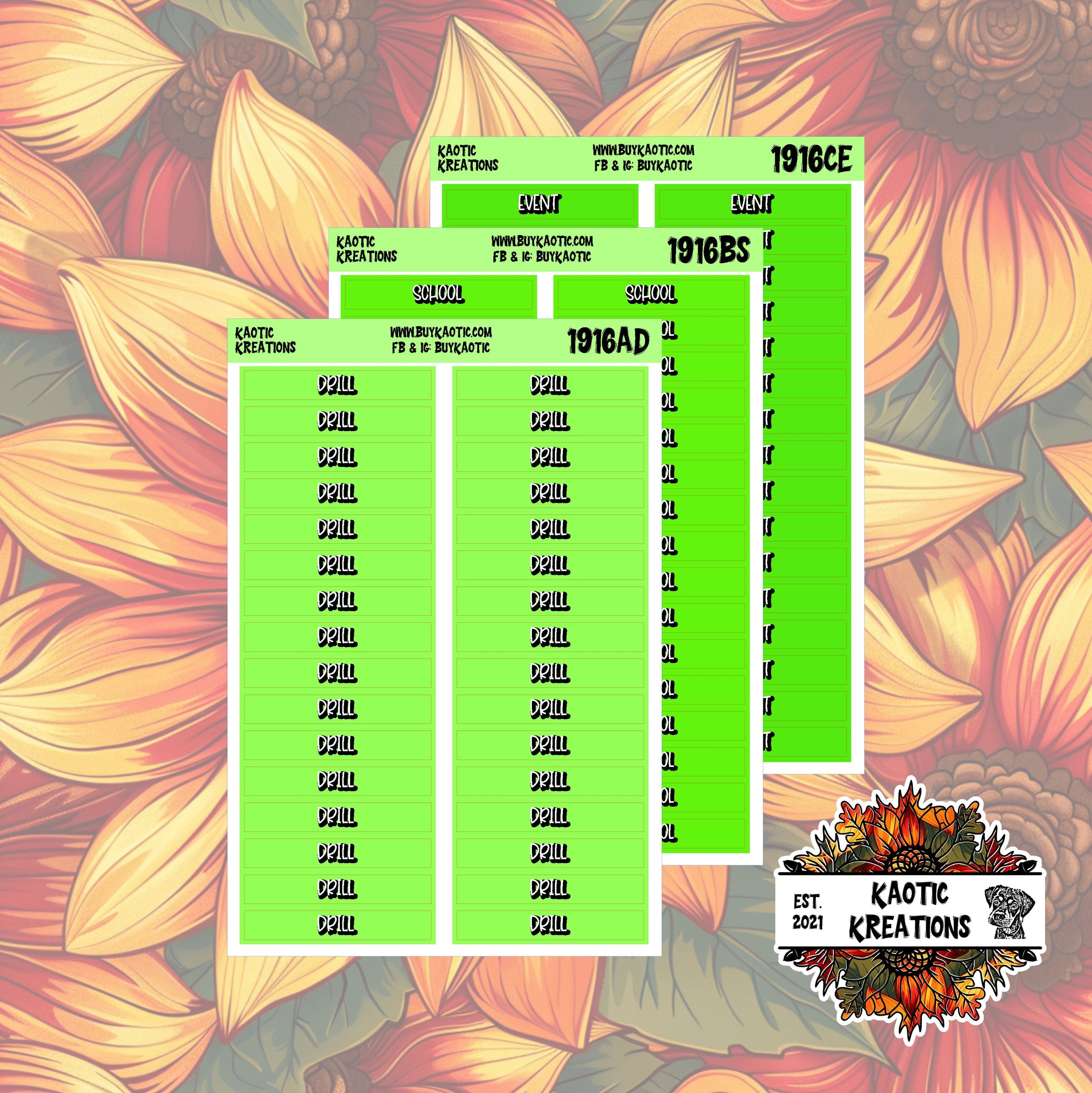 These are sized to fit the monthly portion of your planner. They can def be used in the vertical weekly section but they will need to be trimmed down. They are slightly wider than the weekly standard of 1.5".Â